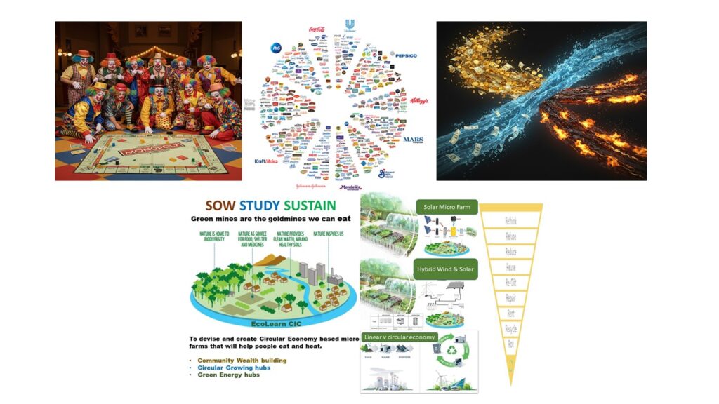 The realm of energy, while undergoing a transition towards renewables, still often operates within established, large-scale corporations as key to the cartel as the Military Industrial Complex, which dictates why and where wars are fought. Thus even with any green agenda, the rigged game is still owned by the cartel. This limits the ability of communities to become energy independent and finance local, regional and community growth. I call it Sow Study Sustain Community Wealth Building.