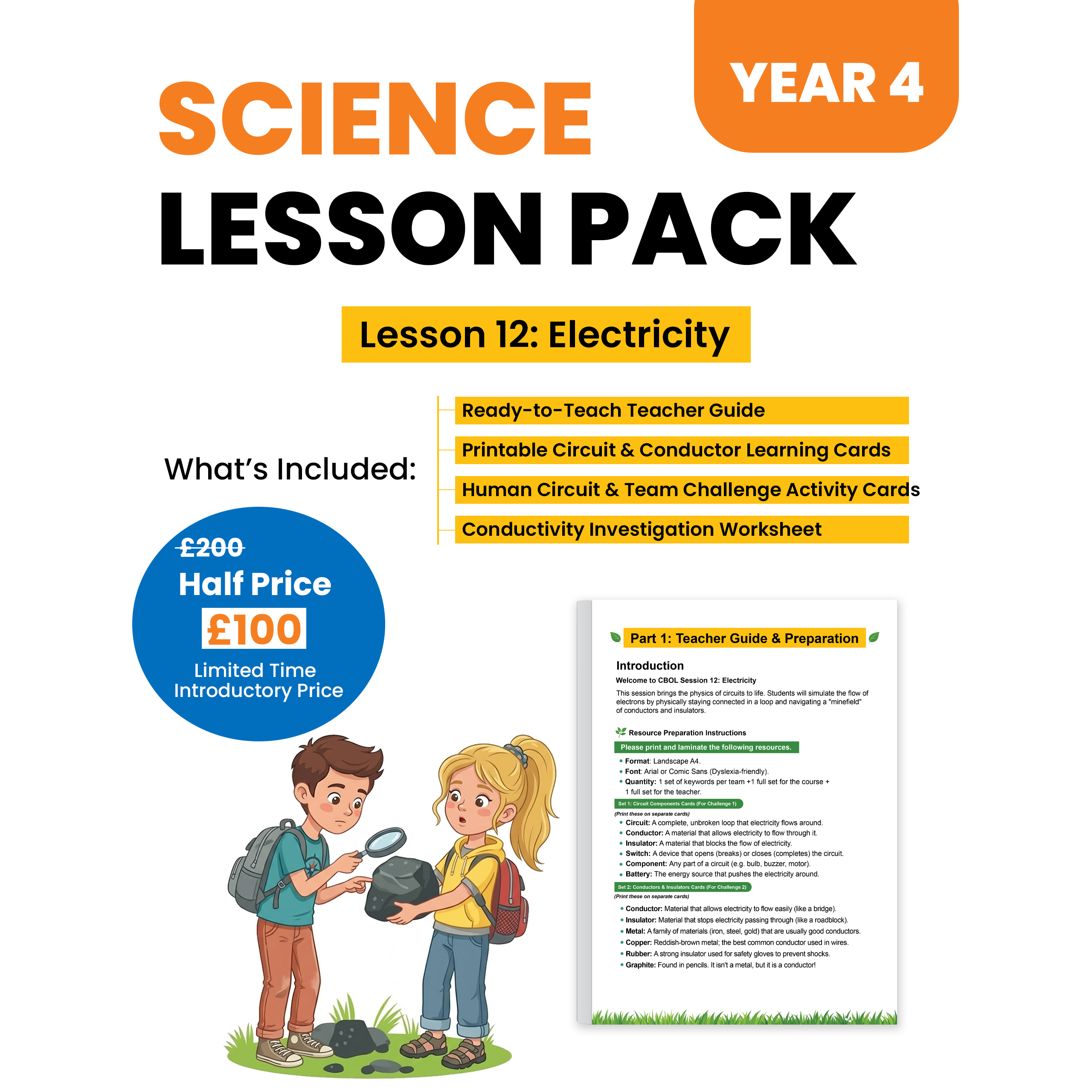 This complete lesson pack helps students understand circuits, conductors, and insulators through movement-based learning and real scientific investigation.